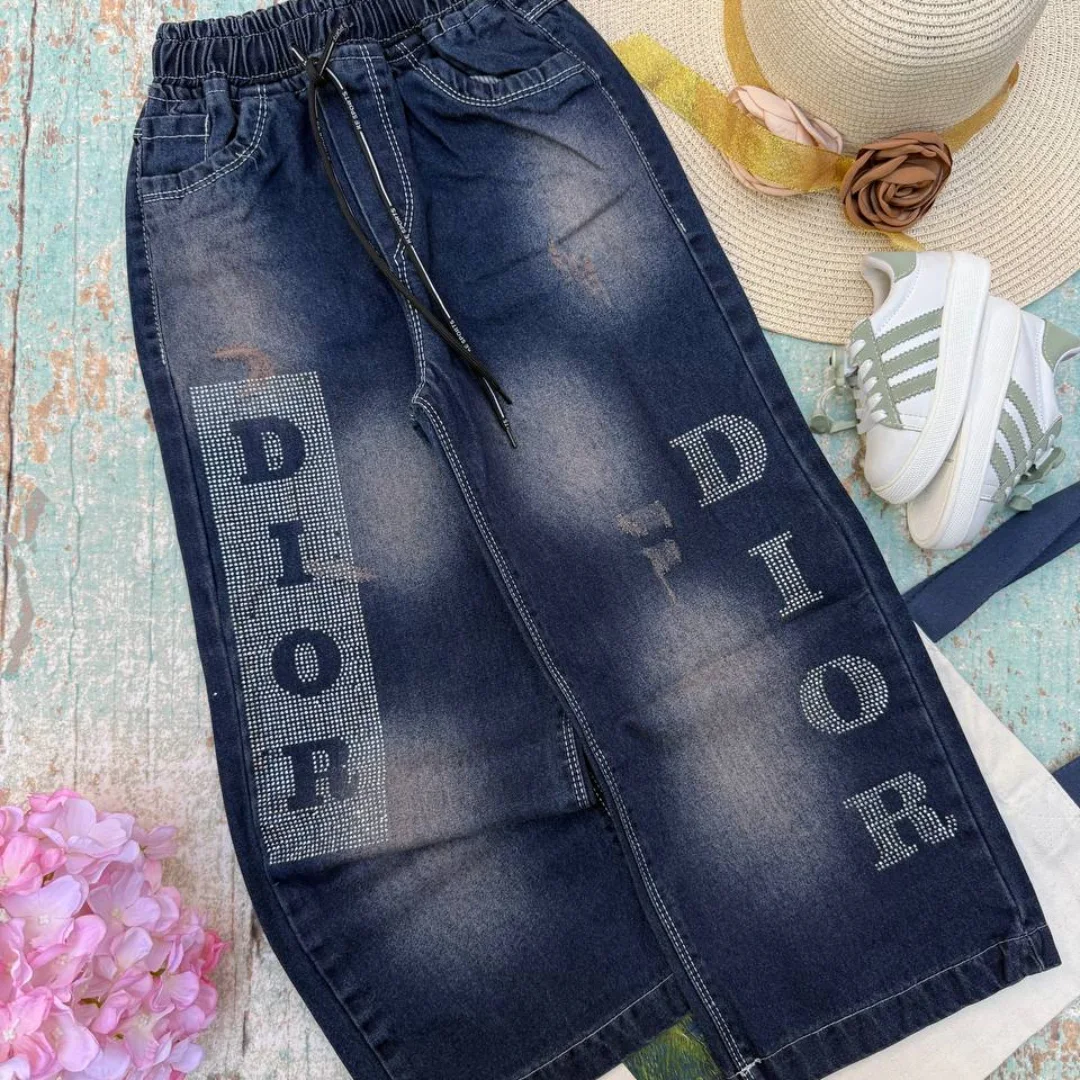 شلوار بچگانه جنس جین (لی) مارک دیور طرح نگین دار سایز ۱۰۰